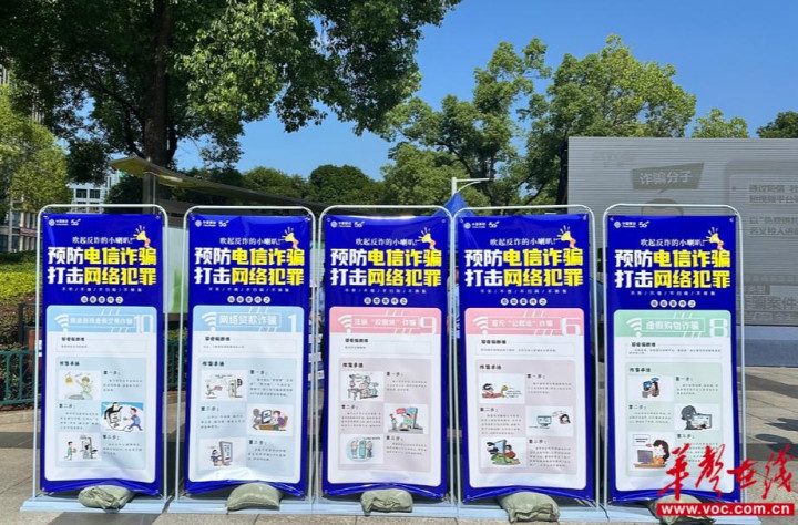 (现场展示电信诈骗高发案例。朱倩萱摄)