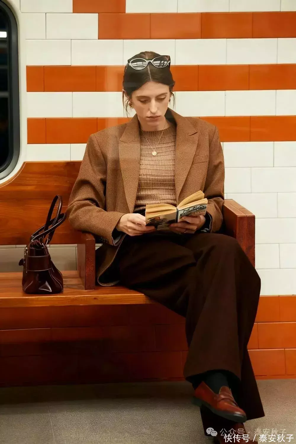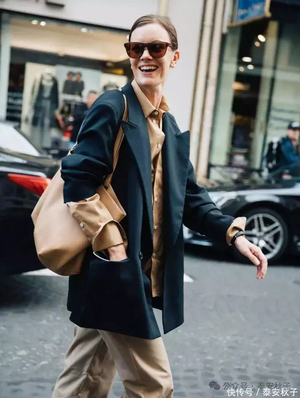 深秋,要是你想穿得简洁大气,还要时髦高级,不必花大钱去买奢侈品,只用西装与同色阔腿裤的搭配即可。